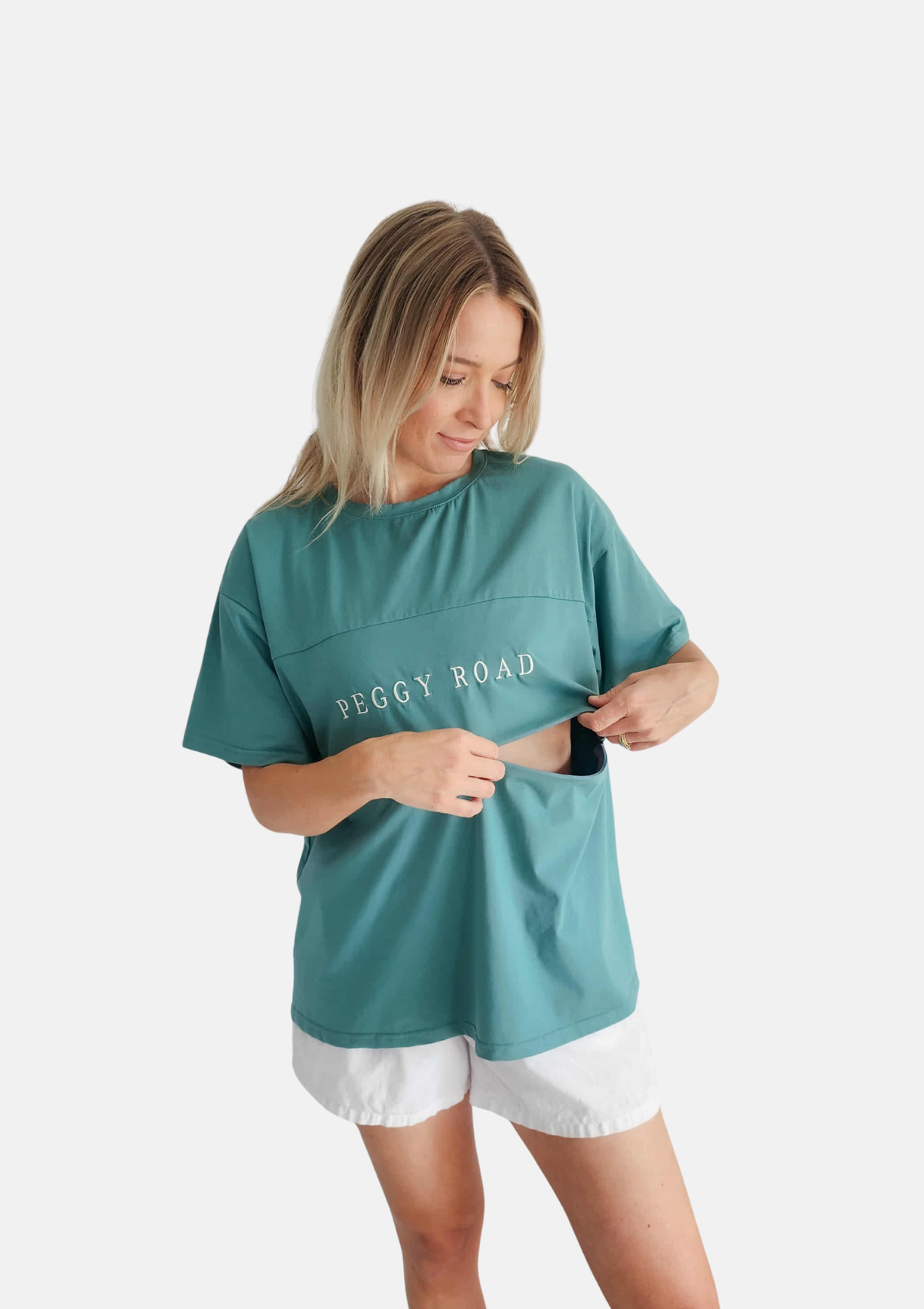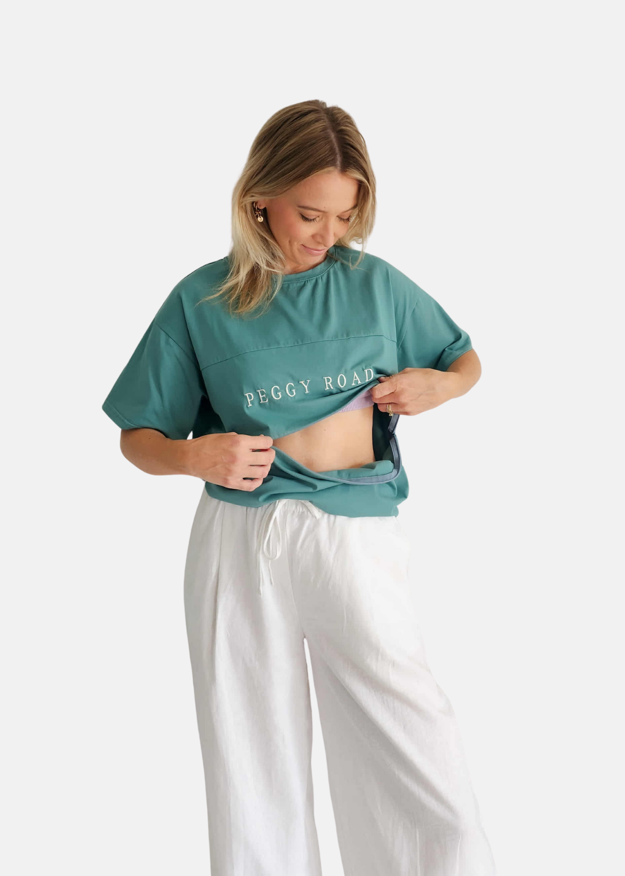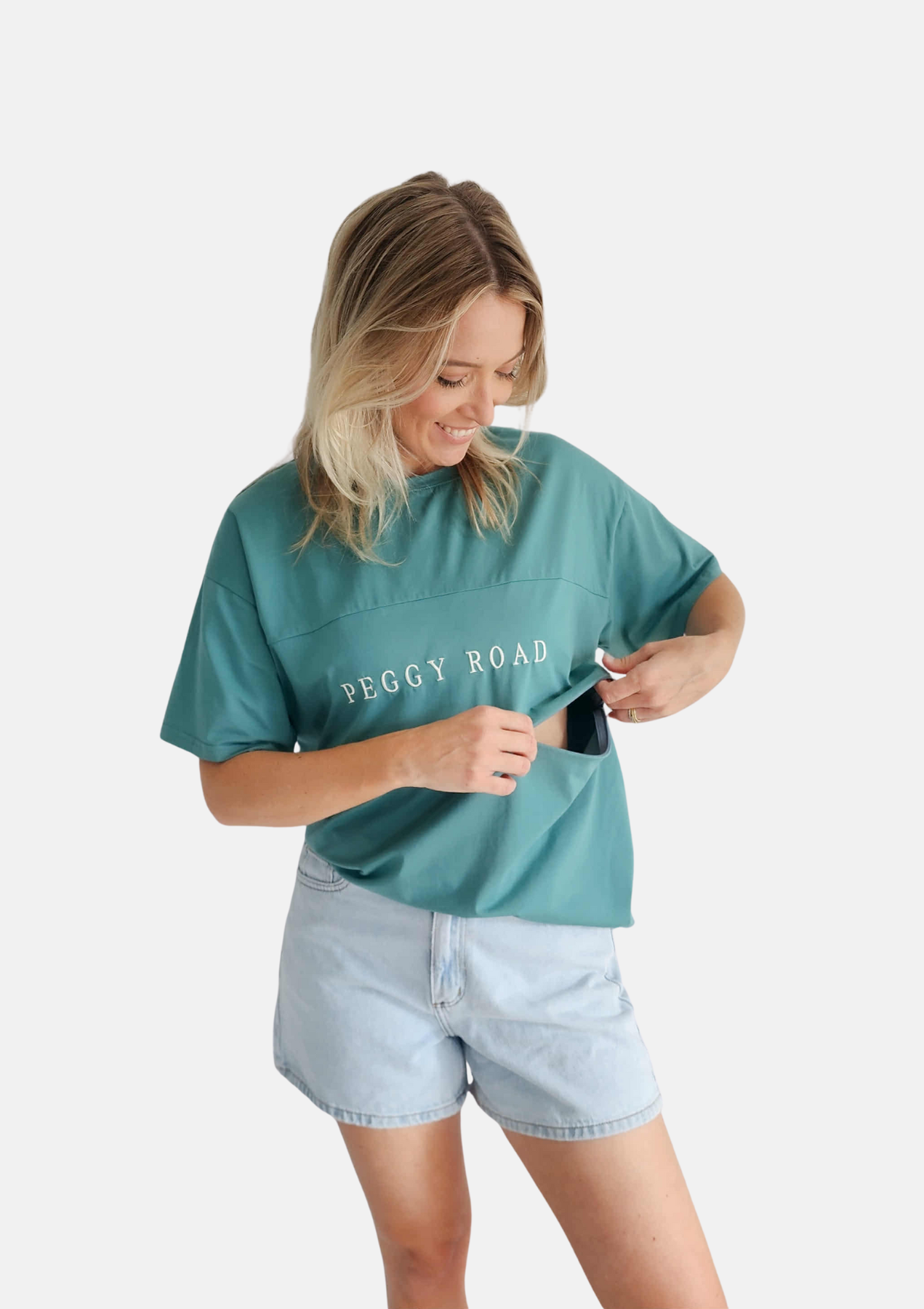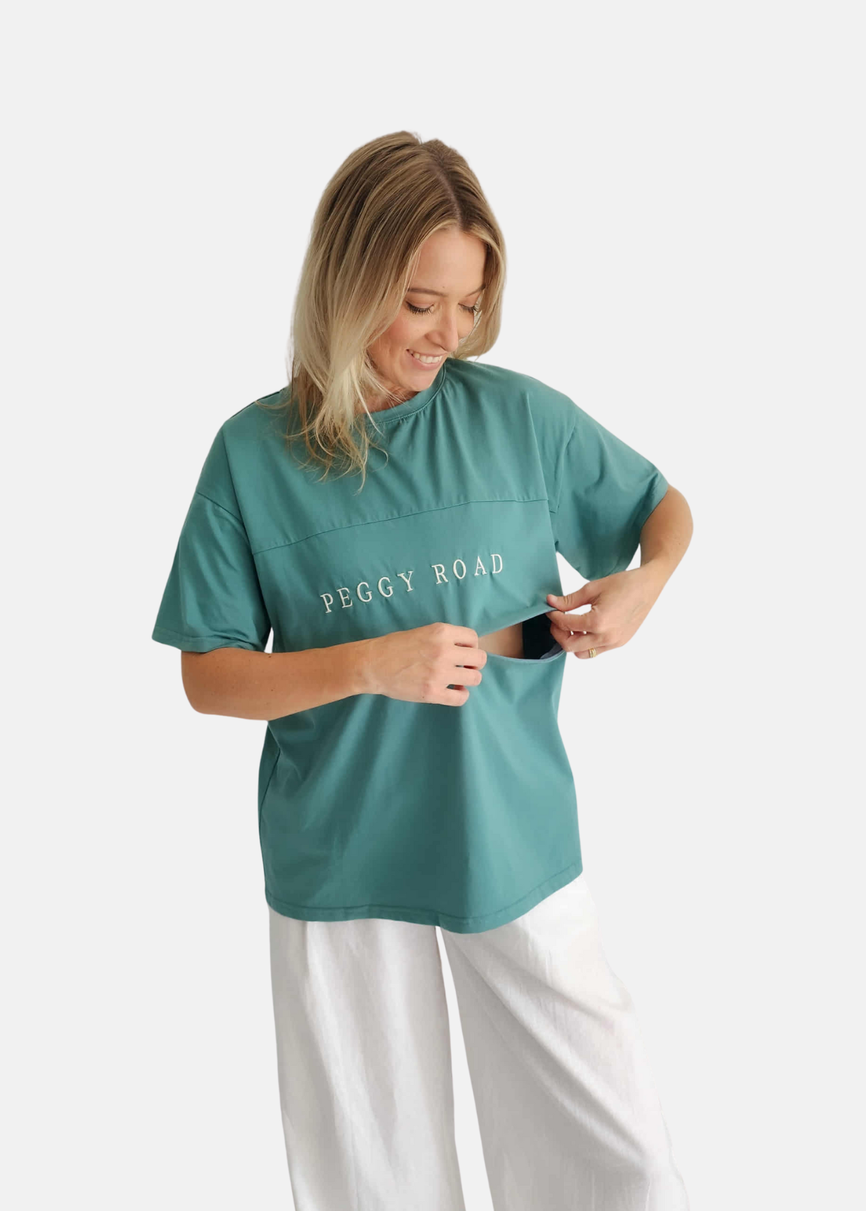 Looking for the perfect top this festive season that keeps you comfortable and makes breastfeeding simple? Our Teal Oversized Breastfeeding Tee is designed just for you.