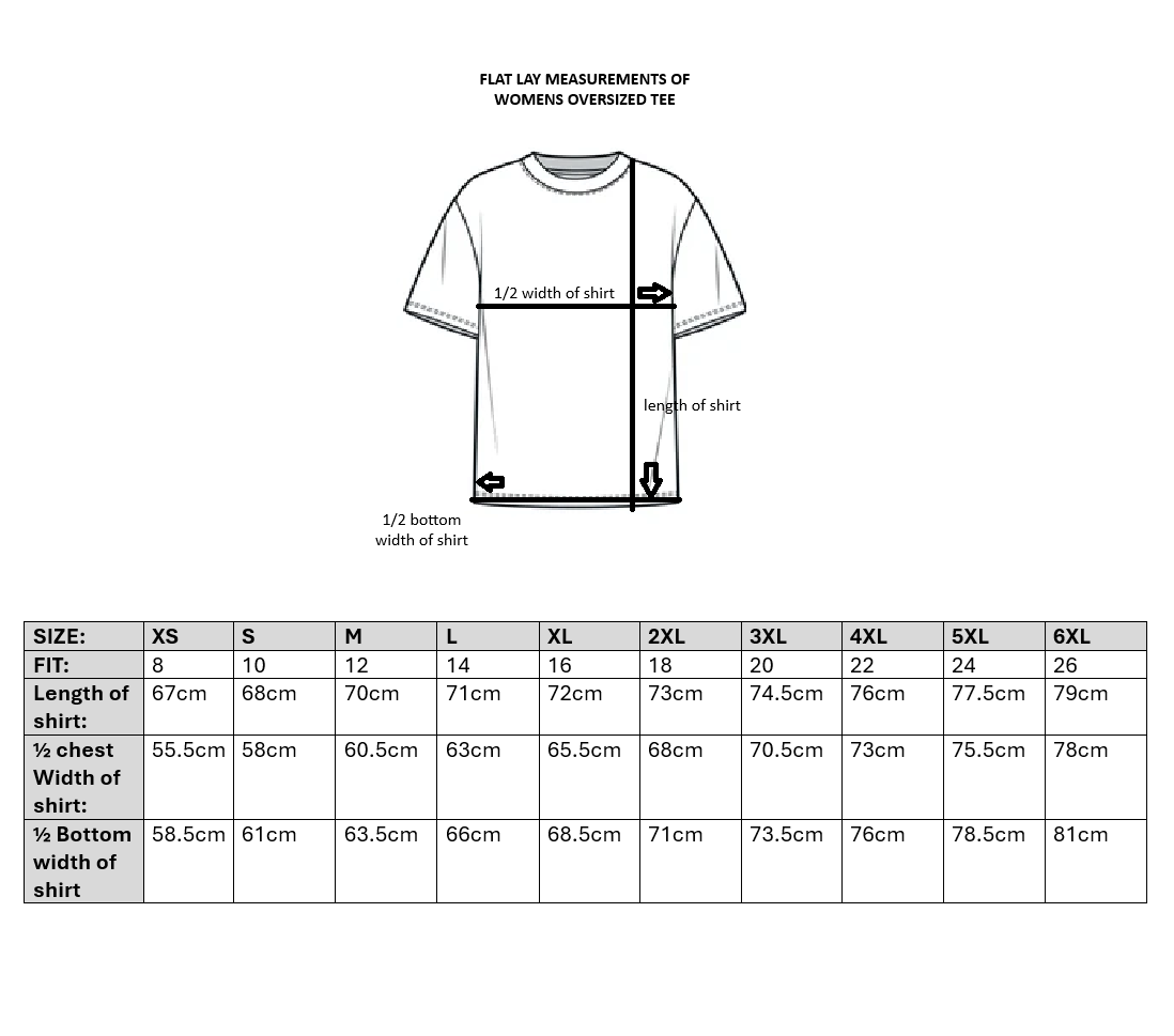 Please note the tees are an oversized make and fit. Please size down for more of standard yet still roomy fit.