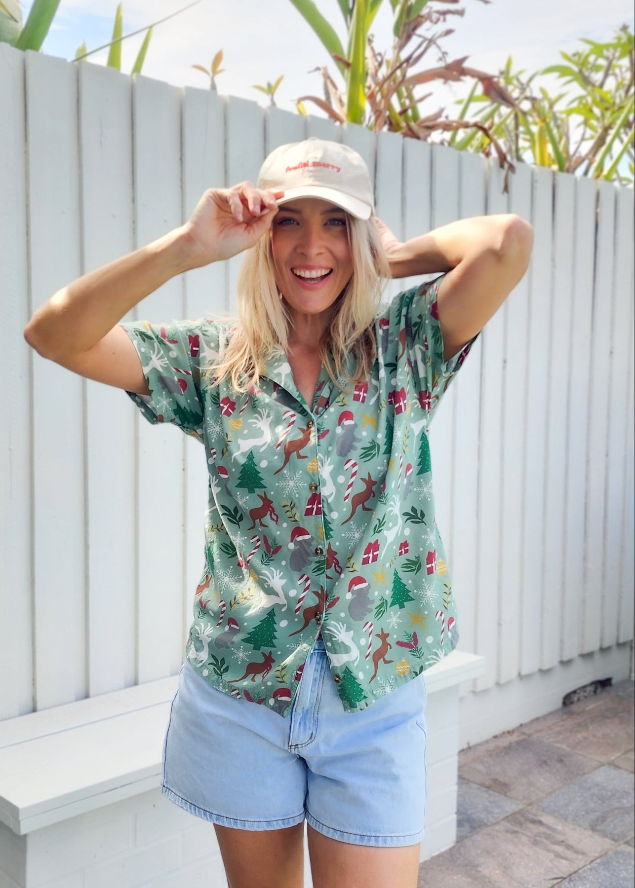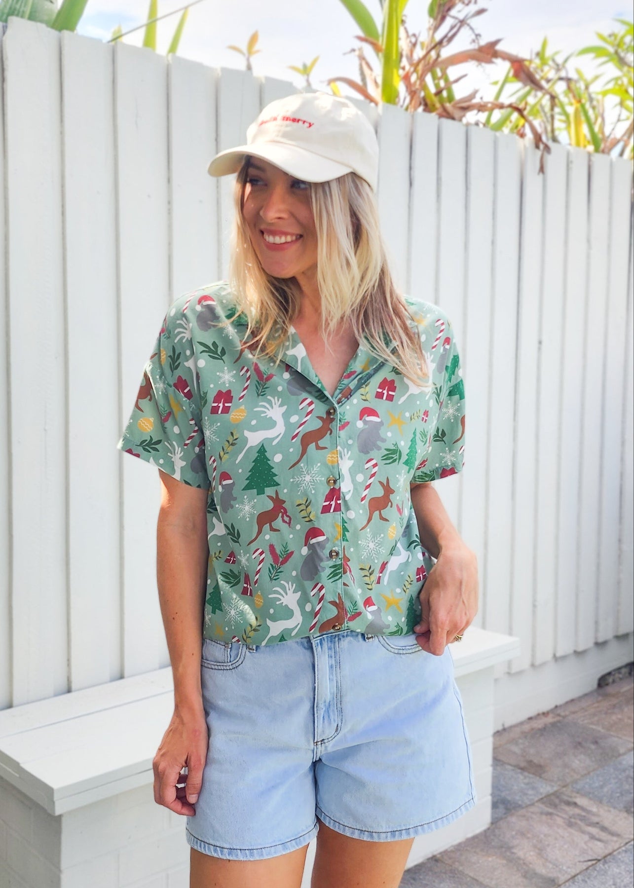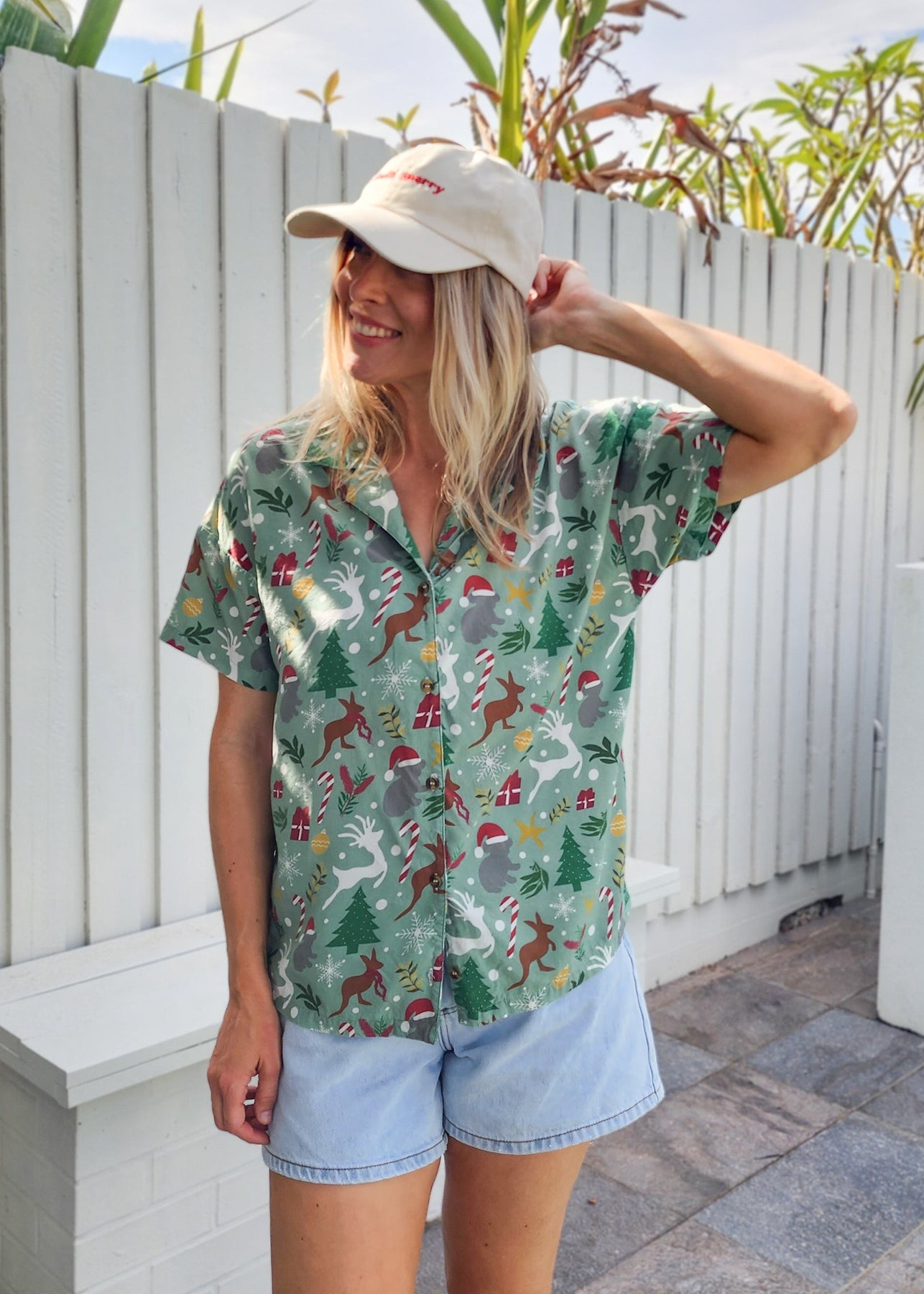 Our popular Australiana Christmas party shirt from 2024 is back just in time for festive fun! Whether you're joining the silly celebrations or standing out on Christmas Day, pair it with our Feelin’ Merry hat to complete your look. Updated with a new cut and made from 100% rayon, this soft, lightweight, breathable, and flowy shirt is perfect for summer parties.