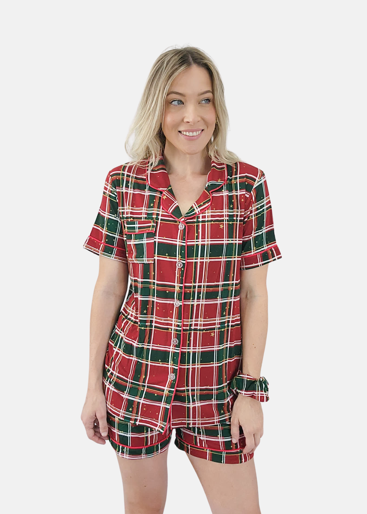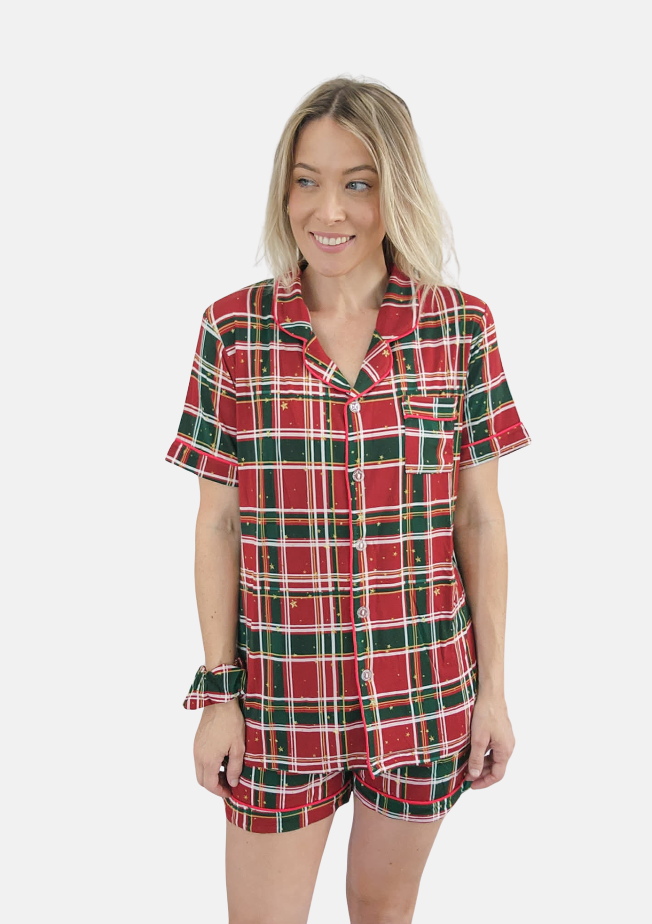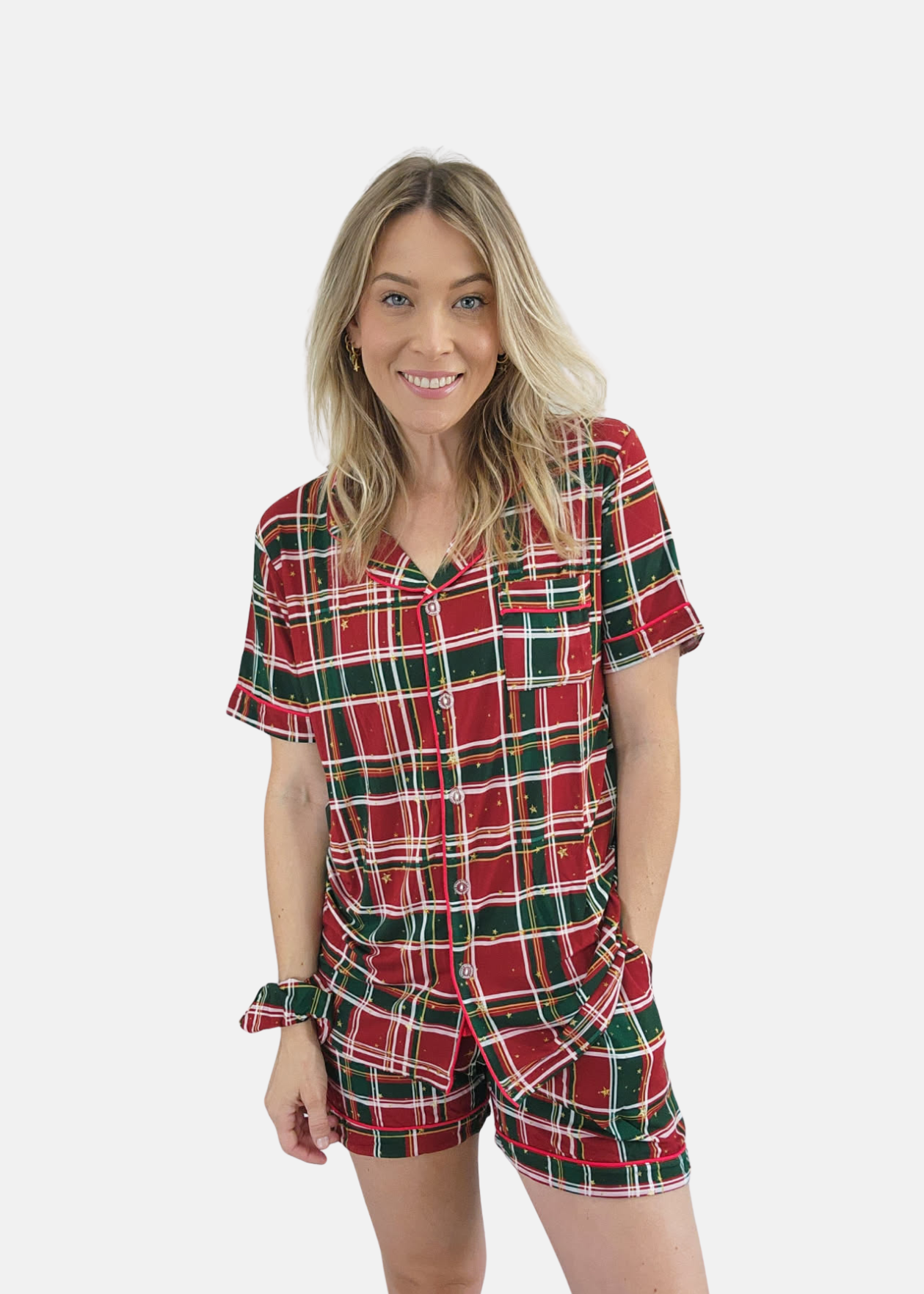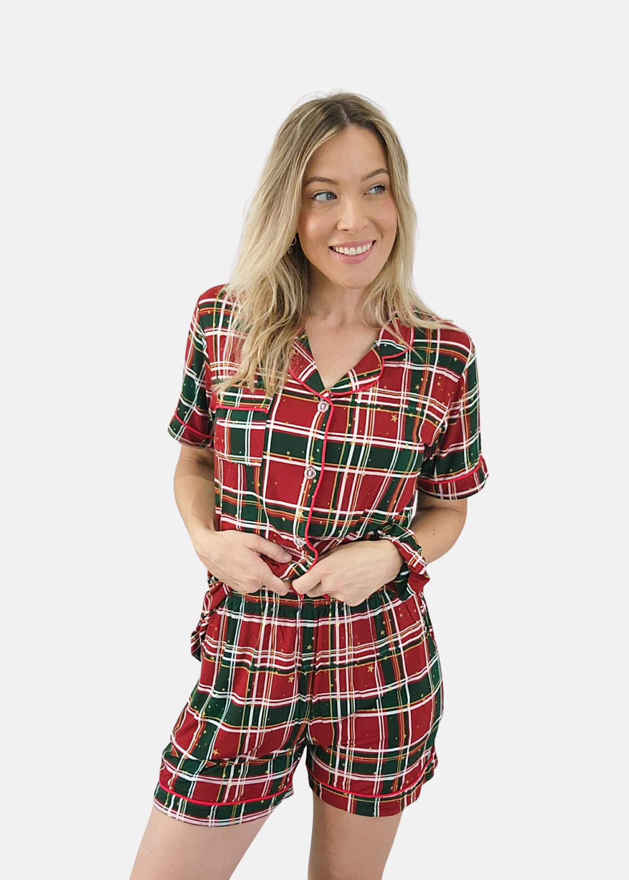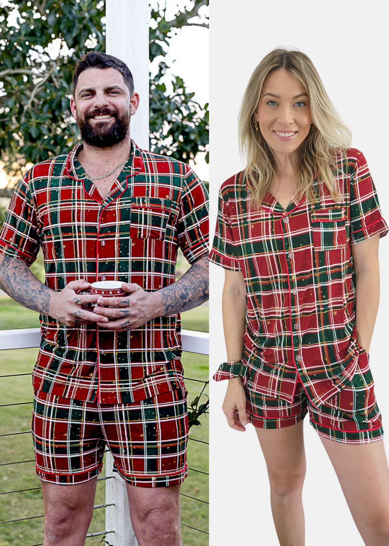 Our classic Tartan Christmas pyjamas are every traditional Christmas lover's dream! Combining cozy comfort with timeless style and a hint of gold sparkle, these super-soft, stretchy jammies will keep you snug all season long.